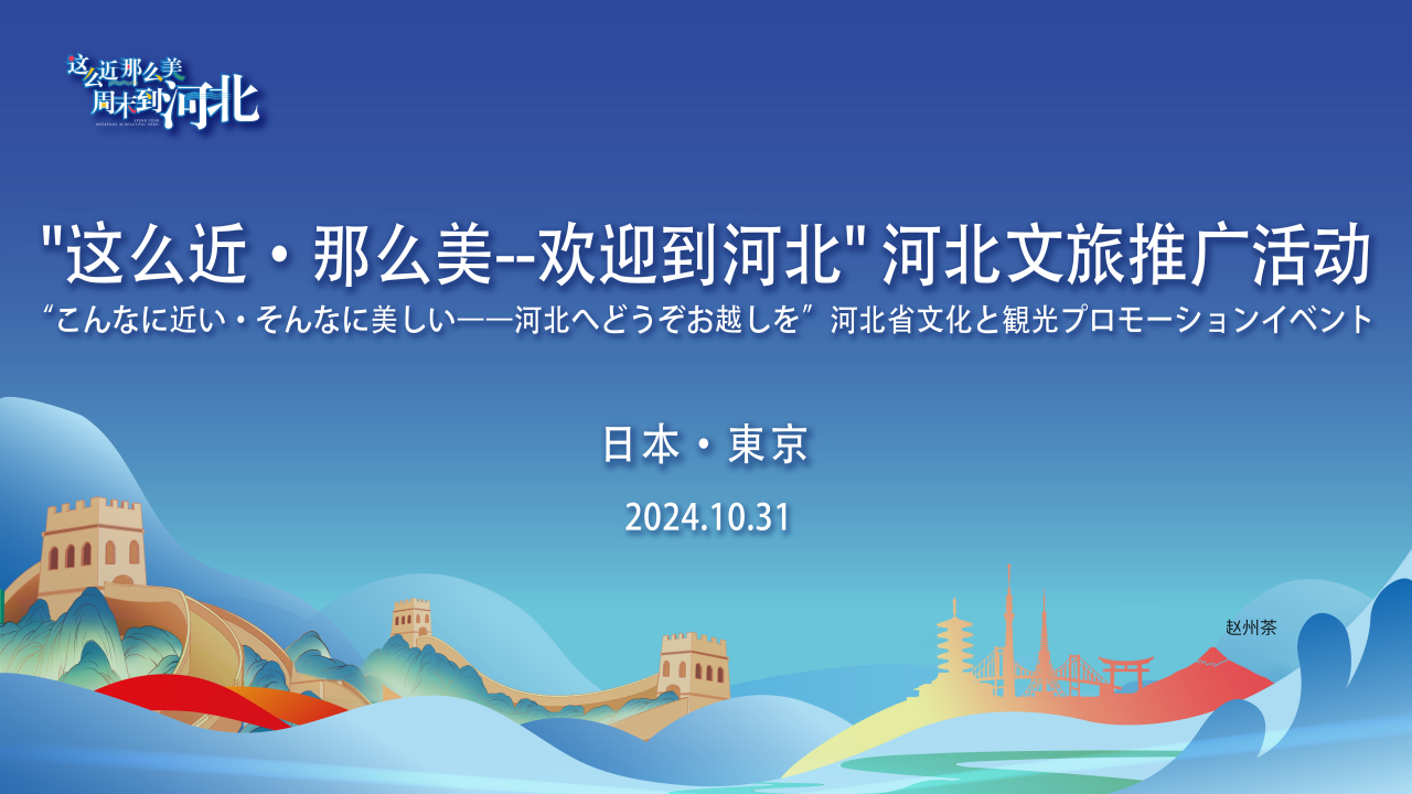 2024年10月31日,由河北省文化和旅游厅、中国驻东京旅游办事处、东京中国文化中心共同主办,河北广电网络集团传媒科技有限公司承办的“这么近·那么美--欢迎到河北”河北文旅推广活动在东京中国文化中心成功举办。
