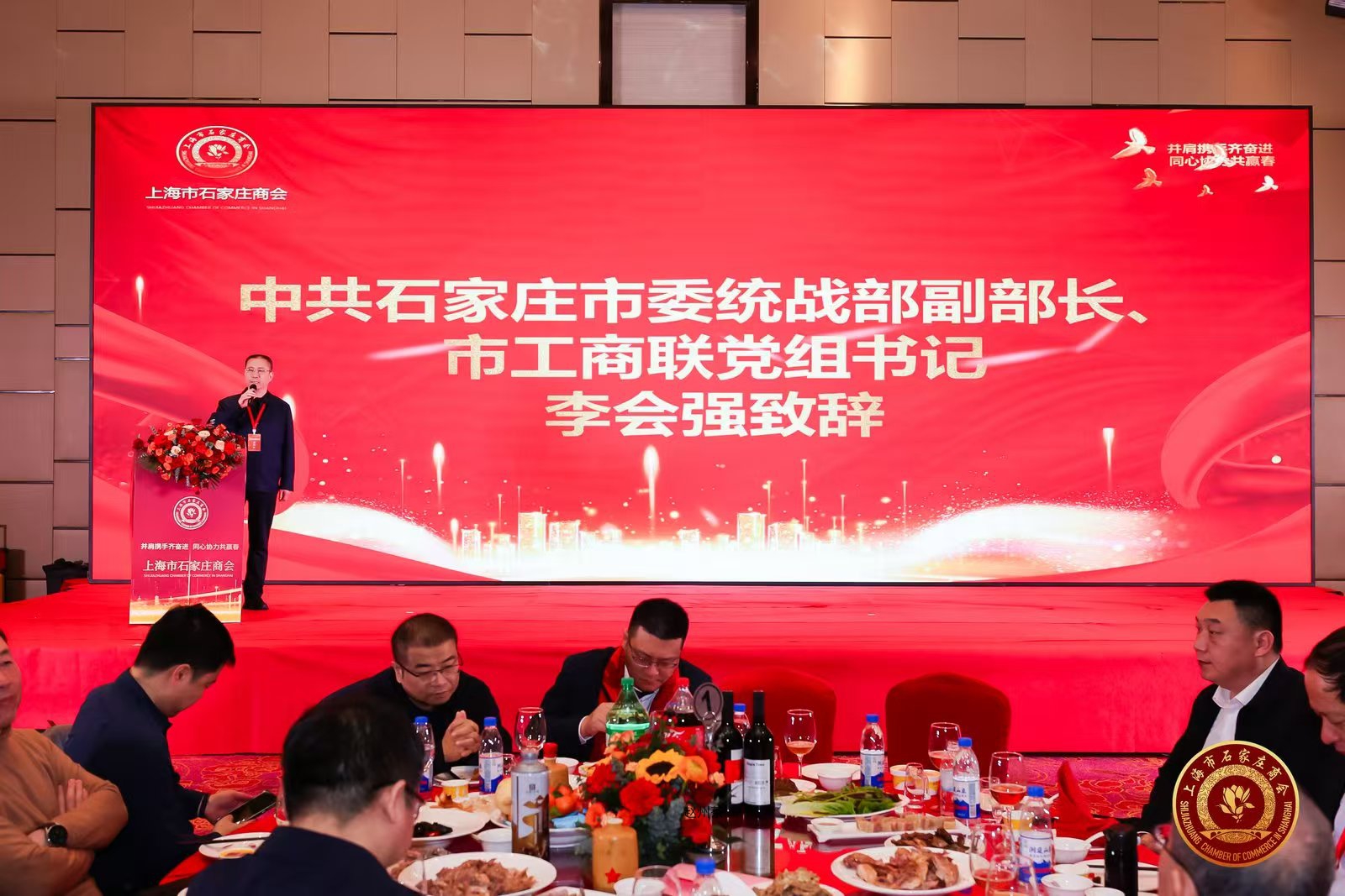 3月1日,上海市石家庄商会二届二次会员大会暨乙巳新春联欢会议于上海举办,中共石家庄市委统战部副部长、市工商联党组书记李会强,河北省驻上海办事处副主任高建伟,上海市石家庄商会会长李勇锋,执行会长兼秘书长崔译夫等领导出席,石家庄赵州茶文化产业发展有限公司受邀参加大会,推广赵州茶文化。