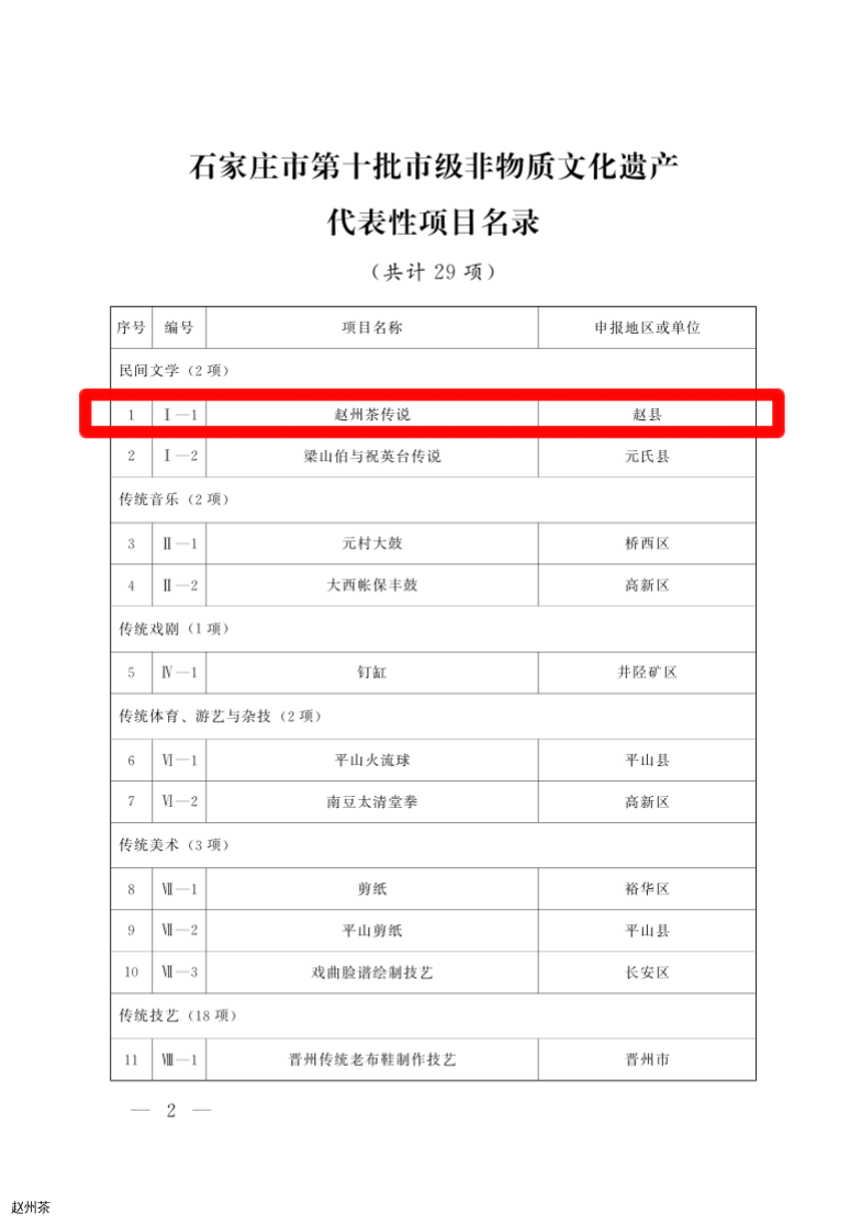 “赵州茶”入选石家庄市第十批市级非物质文化遗产代表性项目名录
