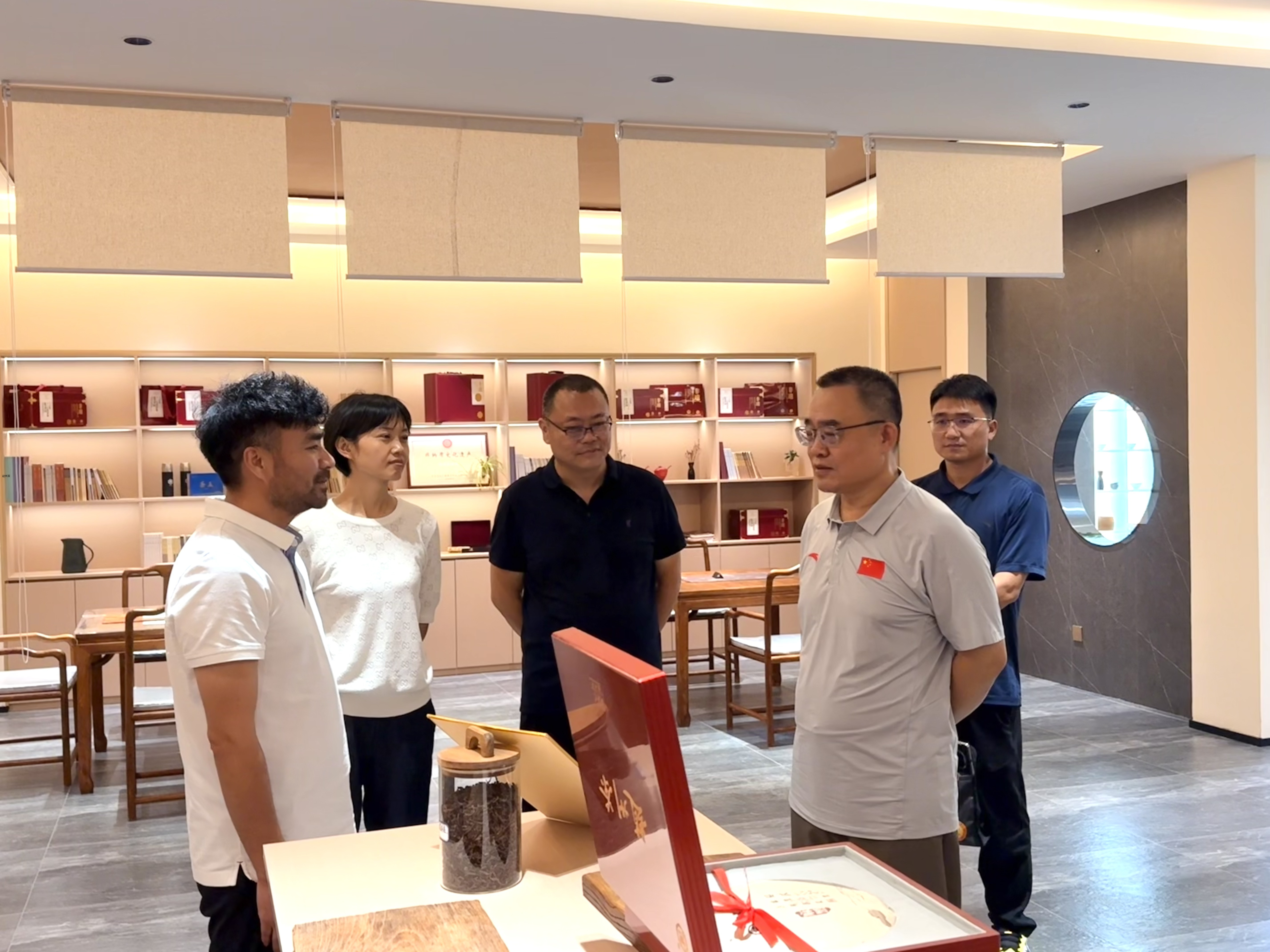 抵达赵州茶韵后,一行人首先来到一楼展示区域,殷斌副部长对赵州茶的品牌文化饶有兴趣,详细了解了其背后蕴含的深厚历史与独特理念。赵州茶作为河北省特色茶文化品牌,不仅承载着当地的文化记忆,更因其独特的禅意文化内涵,在茶文化领域独树一帜。殷斌指出,挖掘和传播这类特色文化品牌,对提升赵县文旅产业的吸引力和竞争力具有重要意义。