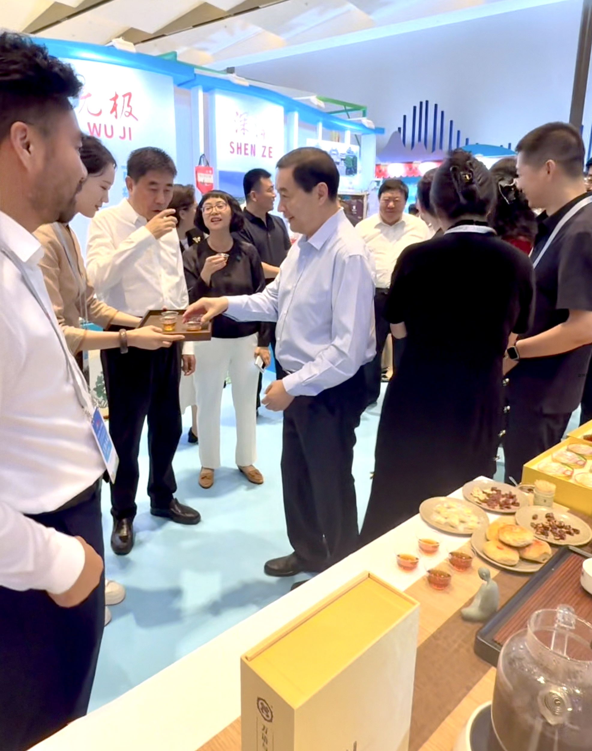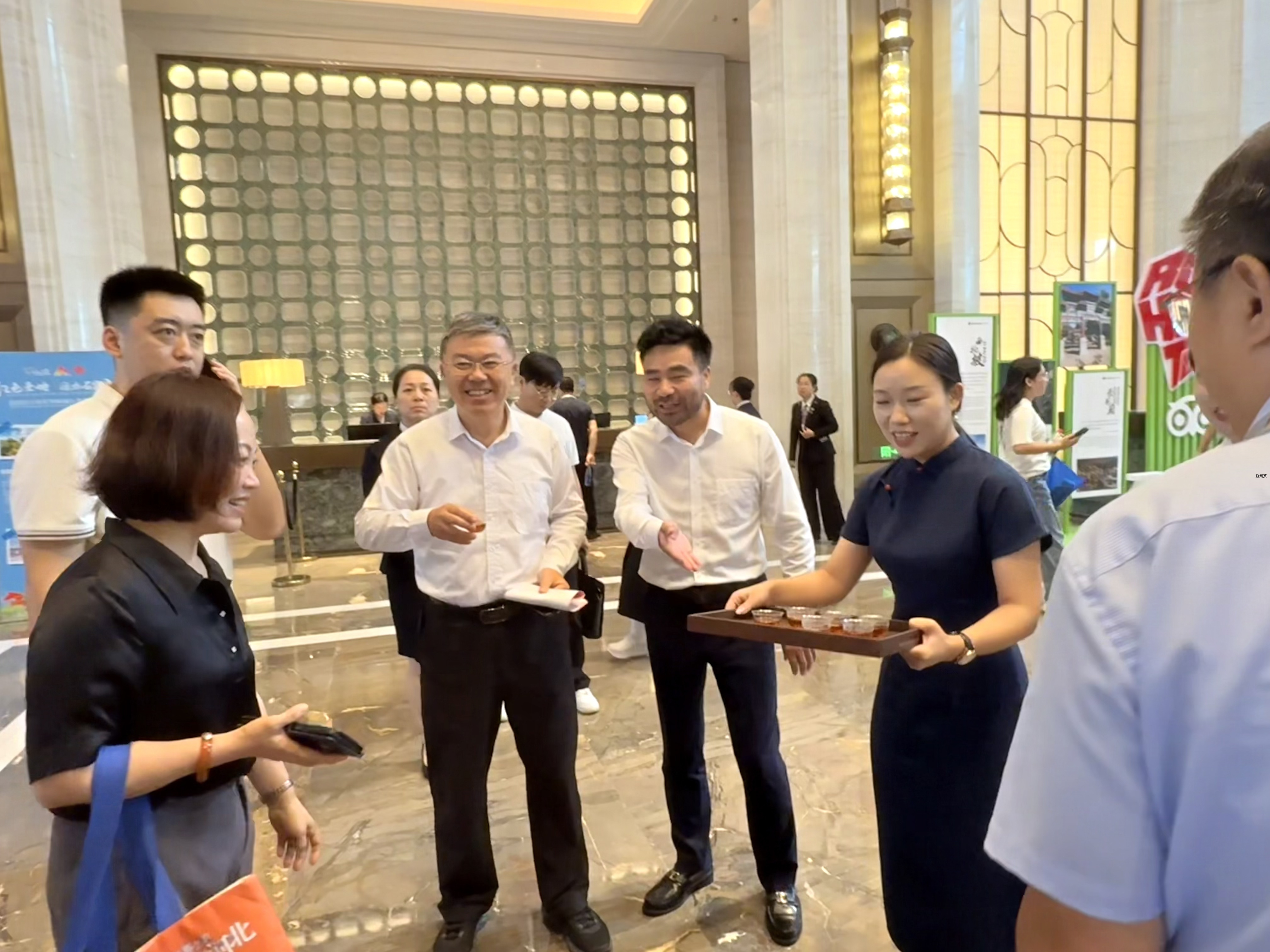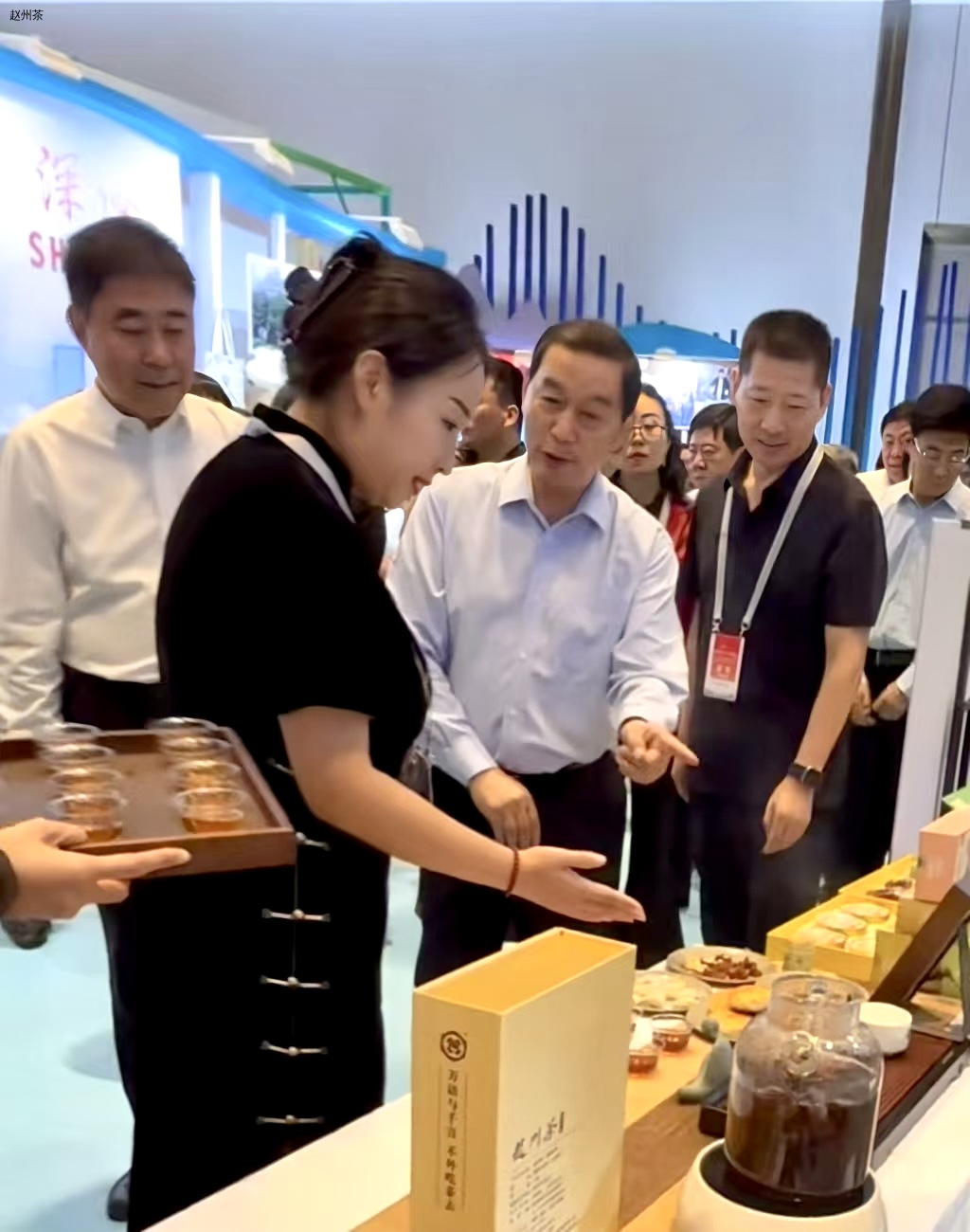 河北省委常委、石家庄市委书记张超超出席活动并来到赵州茶的展区,热情邀请同行嘉宾河北省政府副省长、党组成员赵新海,河北省文化和旅游厅党组书记、厅长赵兵等领导共品一杯赵州茶,超超书记称“品一杯石家庄的茶,品一杯赵州茶”。