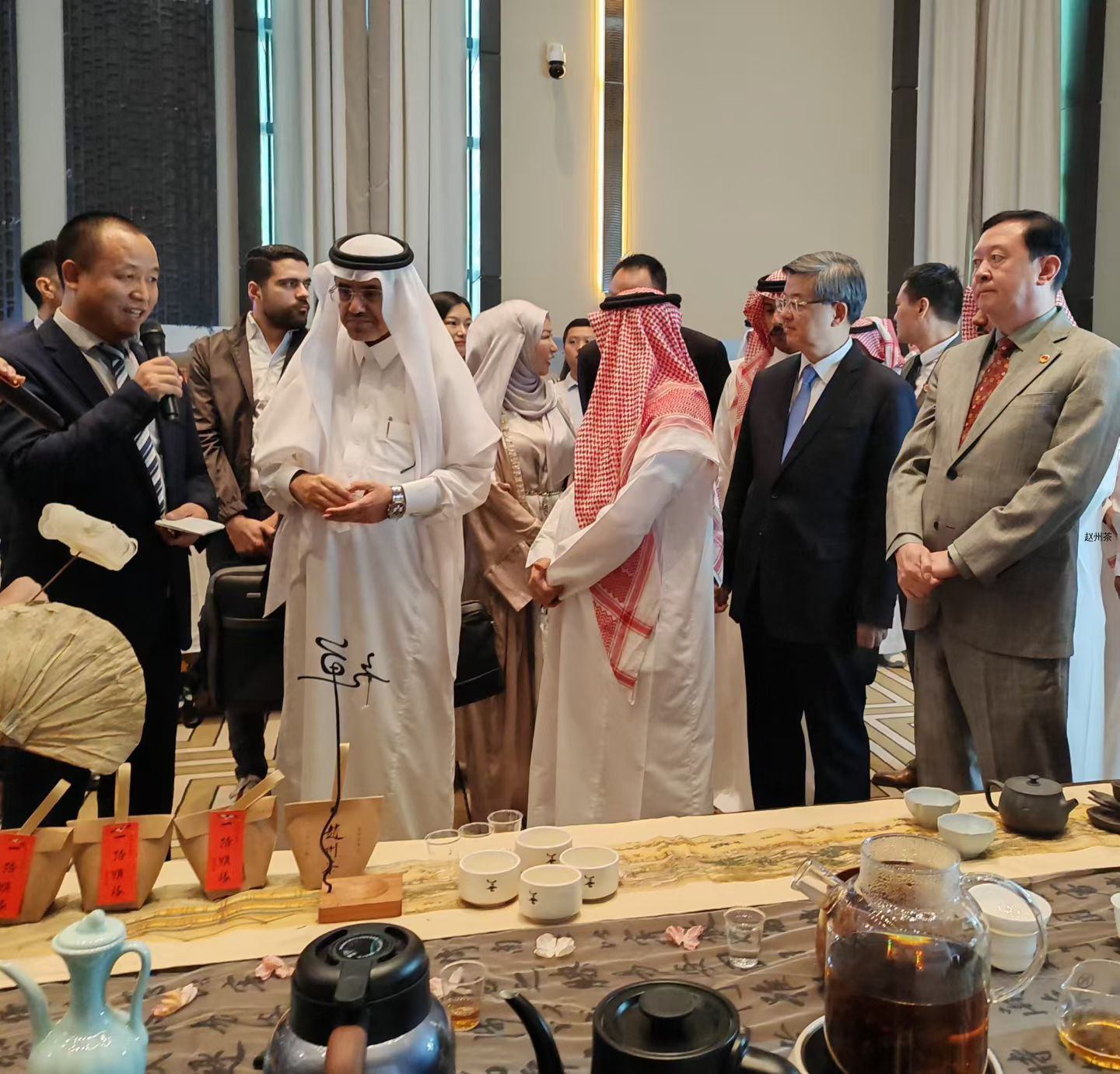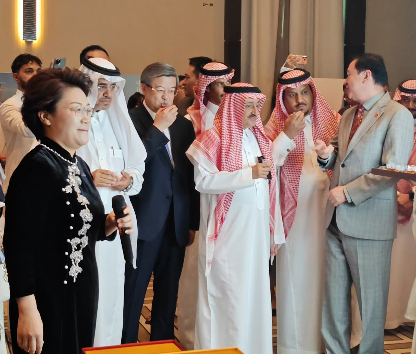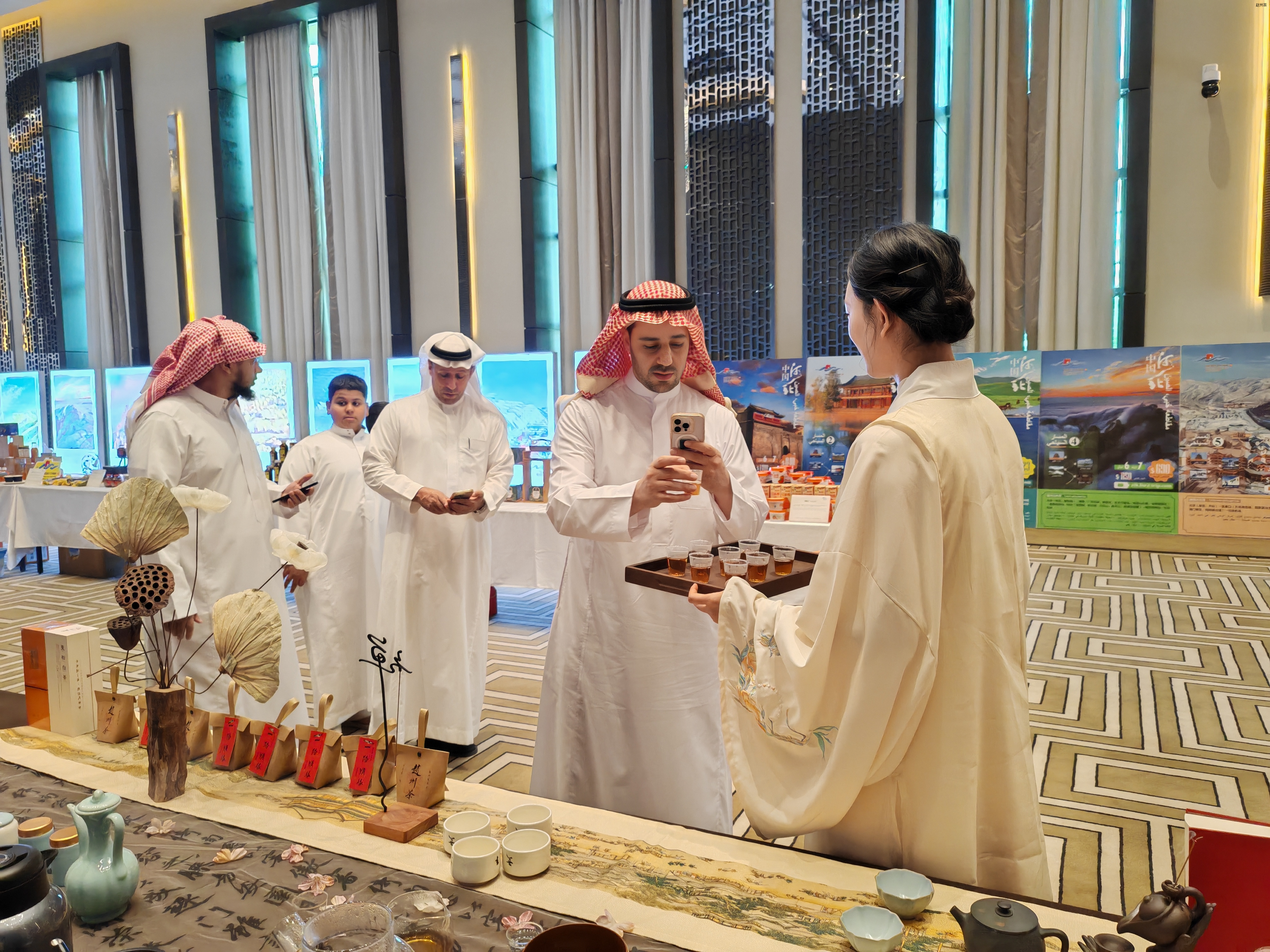 2025年9月25日,河北文旅交流推介活动在沙特阿拉伯首都利雅得圆满举行。活动现场,河北省委书记、省人大常委会主任倪岳峰,中国驻沙特大使常华,河北省文化和旅游厅党组成员、副厅长王荣丽及沙特阿拉伯贵宾等领导嘉宾齐聚一堂,共同品鉴了一杯来自中国河北的赵州茶,石家庄赵县文化广电体育和旅游局茶文化产业负责人陈洪涛参加此次活动,并向领导介绍赵州茶历史文脉,为这场文化交流活动增添了一抹独特的东方韵味。